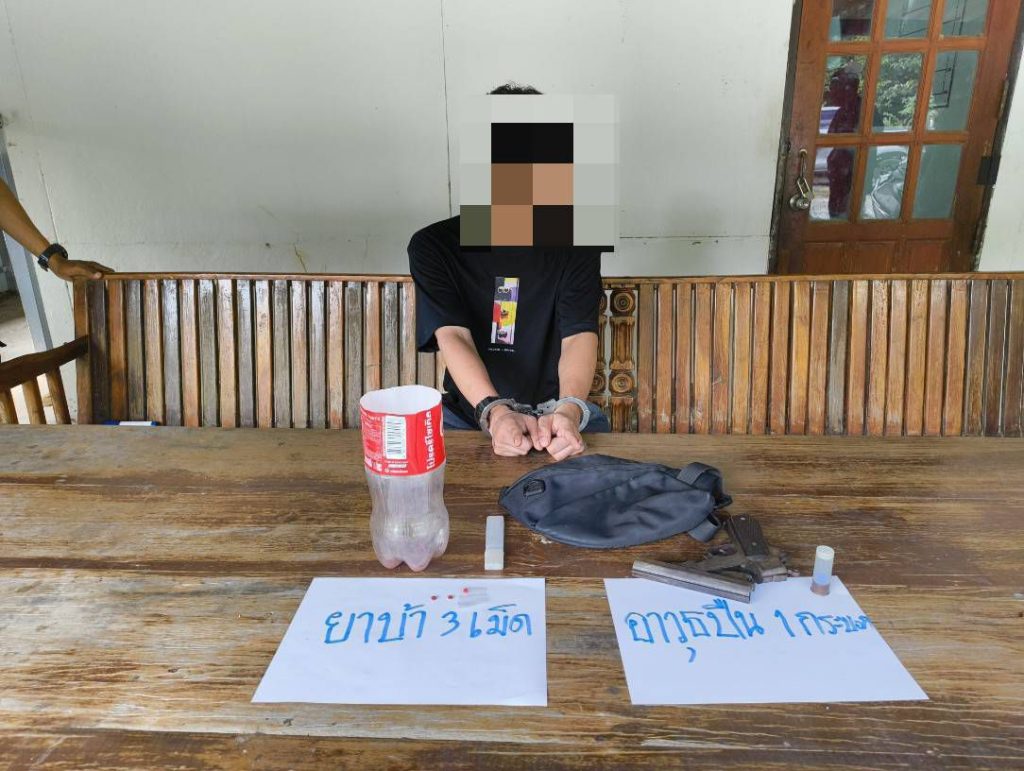 กระทำความผิดฐาน “มียาเสพติดให้โทษประเภท 1(เมทแอมเฟตามีนหรือยาบ้า)ไว้ในครอบครองโดยไม่ได้รับอนุญาต,มีอาวุธปืน(ปืนลูกซองสั้น)และเครื่องกระสุนปืน(เครื่องกระสุนขนาดเบอร์ 12)ไว้ในครอบครองโดยไม่ได้รับอนุญาต,เสพยาเสพติดให้โทษประเภท 1 (เมทแอมเฟตามีนหรือยาบ้า)โดยฝ่าฝืนกฎหมาย”