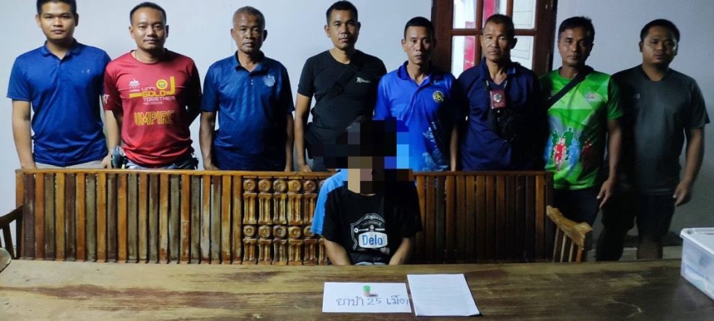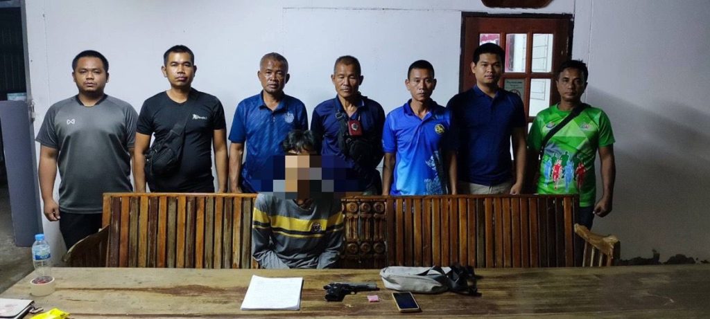 สถานที่จับกุม บริเวณกระท่อมไม่มีเลขที่อยู่ด้านทิศตะวันตกหมู่บ้าน ม.5 ต.สำโรง อ.พลับพลาชัย จ.บุรีรัมย์