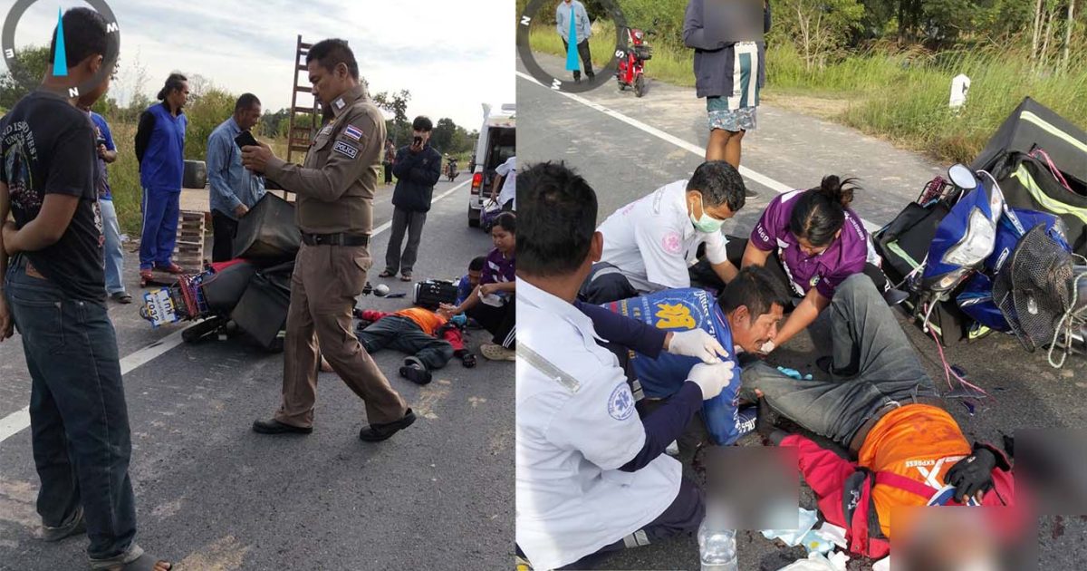 ร.ต.อ.มานพ รอยประโคน รอง สว.(สอบสวน)ฯ ร่วมกับสายตรวจตำบล และกู้ภัย ตรวจสถานที่เกิดเหตุ กรณีรถจักรยานยนต์ชนกับรถพ่วงข้าง มีผู้ได้รับบาดเจ็บ ระหว่างเส้นทางบ้านโคกขมิ้น-ประโคนชัย