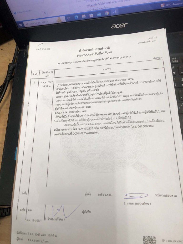 วันที่ 7 ต.ค.67 เวลาประมาณ 11.00 น. ร.ต.อ.มานพ รอยประโคน รอง สว.(สอบสวน)ฯ พนักงานสอบสวน ได้เดินทางตรวจที่เกิดเหตุและสอบปากคำ กรณีกลุ่มบุคคลเข้ามาบ้านเปลี่ยนขอบยางตู้เย็นโดยไม่ได้รับอนุญาต เรียกรับเงินจากผู้แจ้ง 750 บาท