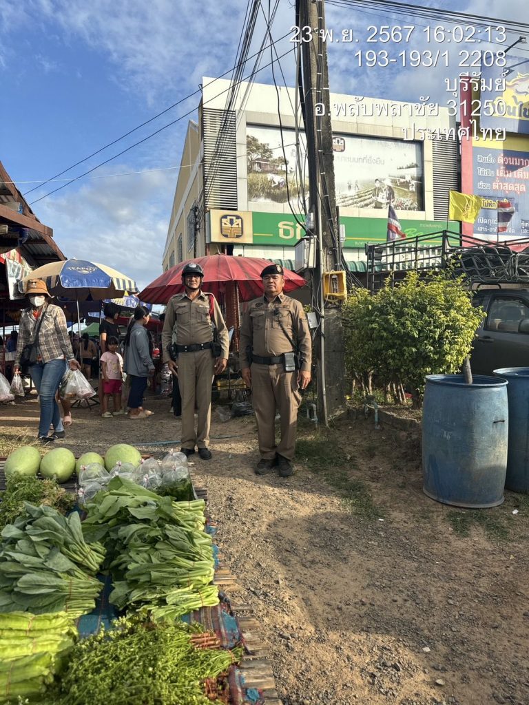 วันที่ 23 พฤศจิกายน 2567 เวลา 15.55 น. ร.ต.ท.บุญเทียม ปะกาเร รอง สว(ป.)ฯ พร้อม สายตรวจรถจักรยานยนต์ รักษาความปลอดภัยตลาดนัดข้าง ธกส.พลับพลาชัย ต.สะเดา อ.พลับพลาชัยฯ