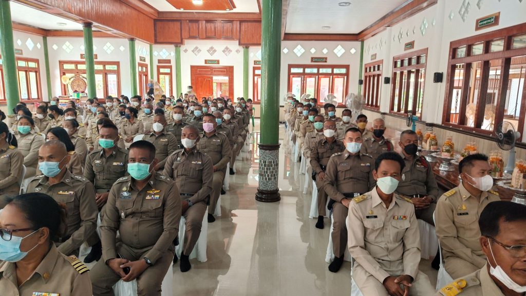 ร่วมพิธีเจริญพระพุทธมนต์ถวายพระพรชัยมงคล 5 มกราคม 2566 โดย admin_ppc05 / ข่าวภารกิจผู้บังคับบัญชา วันนี้ (5 ม.ค.2566) เวลา 09.00 น. พ.ต.อ.พงศ์ยุทธ์ แก้วดอนรี ผกก.สภ.พลับพลาชัย พร้อมข้าราชการตำรวจในสังกัด ร่วมกับหัวหน้าส่วนราชการ ผู้บริหารสถานศึกษา ผู้บริหารองค์กรส่วนท้องถิ่น กำนัน ผู้ใหญ่บ้าน ร่วมพิธีเจริญพระพุทธมนต์ถวายพระพรชัยมงคลแด่ สมเด็จพระเจ้าลูกเธอ เจ้าฟ้าพัชรกิติยาภา นเรนทิราเทพยวดี กรมหลวงราชสาริณีสิริพัชร มหาวัชรราชธิดา ณ วัดป่าโคกตะเคียน หมู่ 7 ต.สะเดา อ.พลับพลาชัย จ.บุรีรัมย์ โดยมี นายสมใจ พุทธเสนา นายอำเภอพลับพลาชัย เป็นประธานในพิธี FacebookFacebookXXLINELine