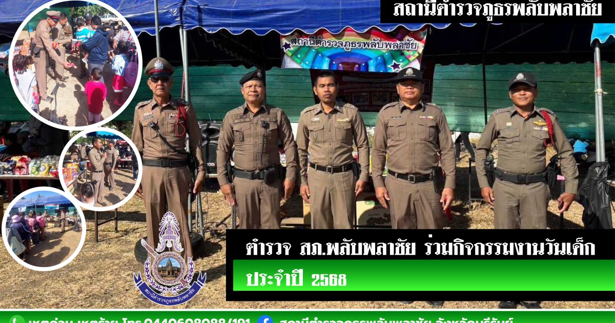 วันที่ 11 ม.ค.68 เวลา 09.00 น. พ.ต.ต.วรกฤต มั่งมูล สวป.ฯร่วมกับข้าราชการตำรวจ สภ.พลับพลาชัย ได้ร่วมกิจกรรมวันเด็กที่เทศบาลพลับพลาชัยเนื่องในวันเด็กแห่งชาติ โดยมีนายศุภชัย ช่วยชู นายอำเภอพลับพลาชัยมาเป็นประธานในพิธี ทั้งนี้ได้เป็นตัวแทนของสถานีตำรวจภูธรพลับพลาชัยนำสิ่งของอาหารขนมเครื่องดื่มมาแจกให้กับเด็กๆที่มาร่วมงานในครั้งนี้